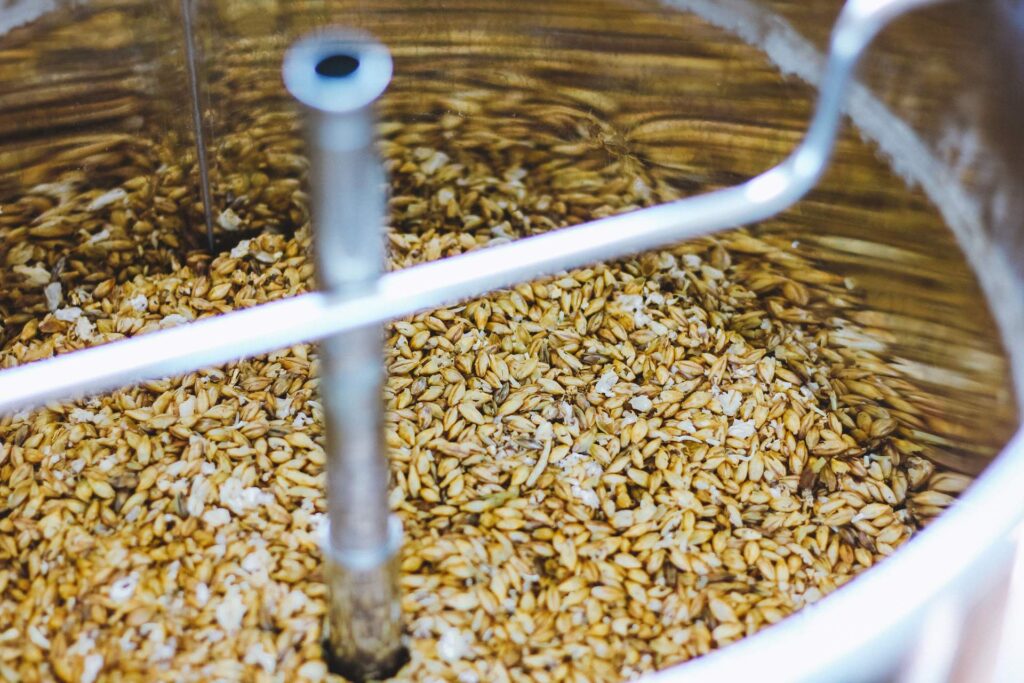Le houblon sauvage est bien en forme dans le jardin du copain. Il envahit même sa cabane ! Il est temps de lui faire une petite taille… On case un maximum de cônes dans mon sac, ça devrait être suffisant. Un coup de concasseur plus tard à la Brasserie des 7 Bonnettes, et j’ai le malt nécessaire pour brasser cette petite bière.