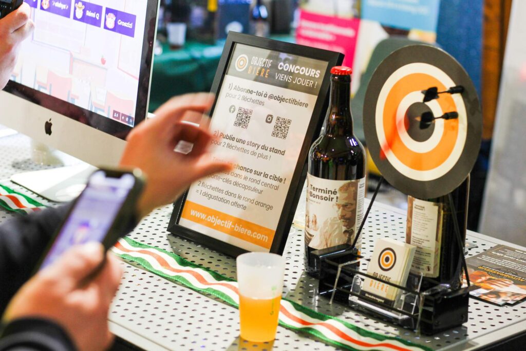 En bout de comptoir, on avait installé un quiz et un jeu de fléchettes pour faire gagner des goodies et des dégustations. Et en exclu, vous pouviez découvrir l’étiquette du Brassin #02 d’Objectif Bière (teasing ci-dessous). C’était aussi l’occasion de faire un petit « bottle share » avec notre ami hobbeer_one venu nous accompagner toute la journée avec son neveu.
