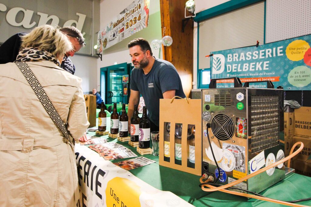 Arvienzi, à gauche de la scène, présentait sa gamme de bières brassées en nomade, tantôt à Wagnonville ou à la Brasserie des 3 Clochers.